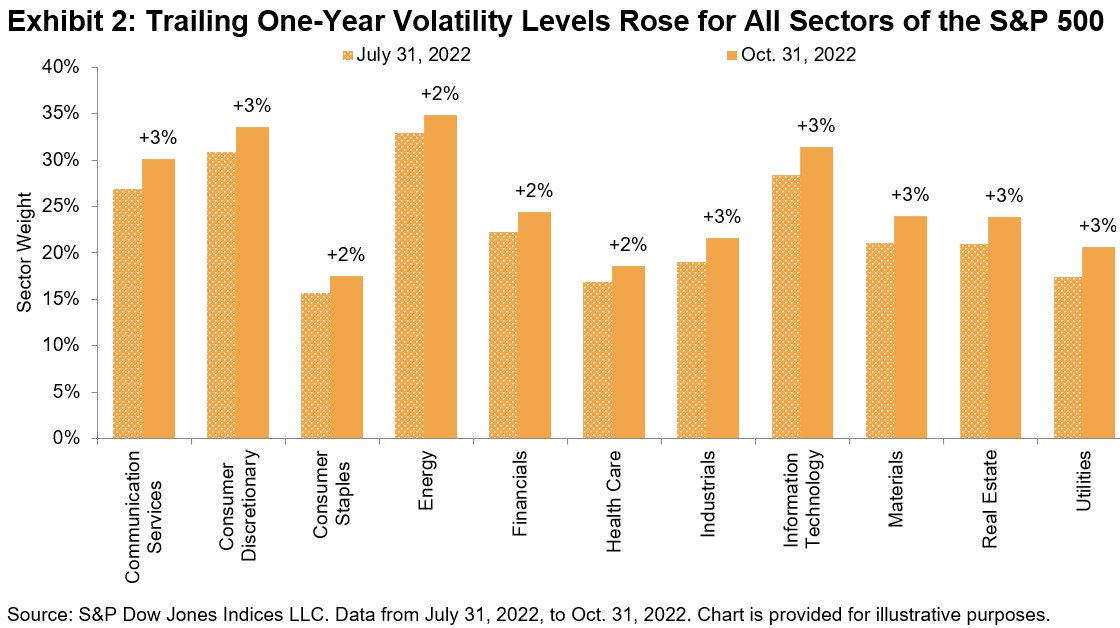 Since August, volatility has risen for all S&P 500 sectors, with Consumer Discretionary and Energy maintaining their status as the most volatile sectors.