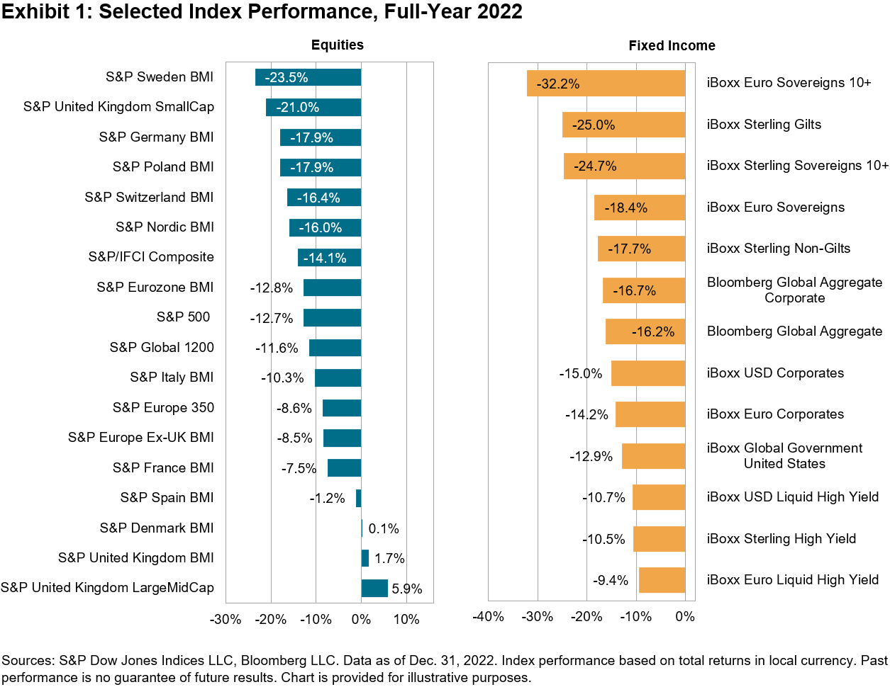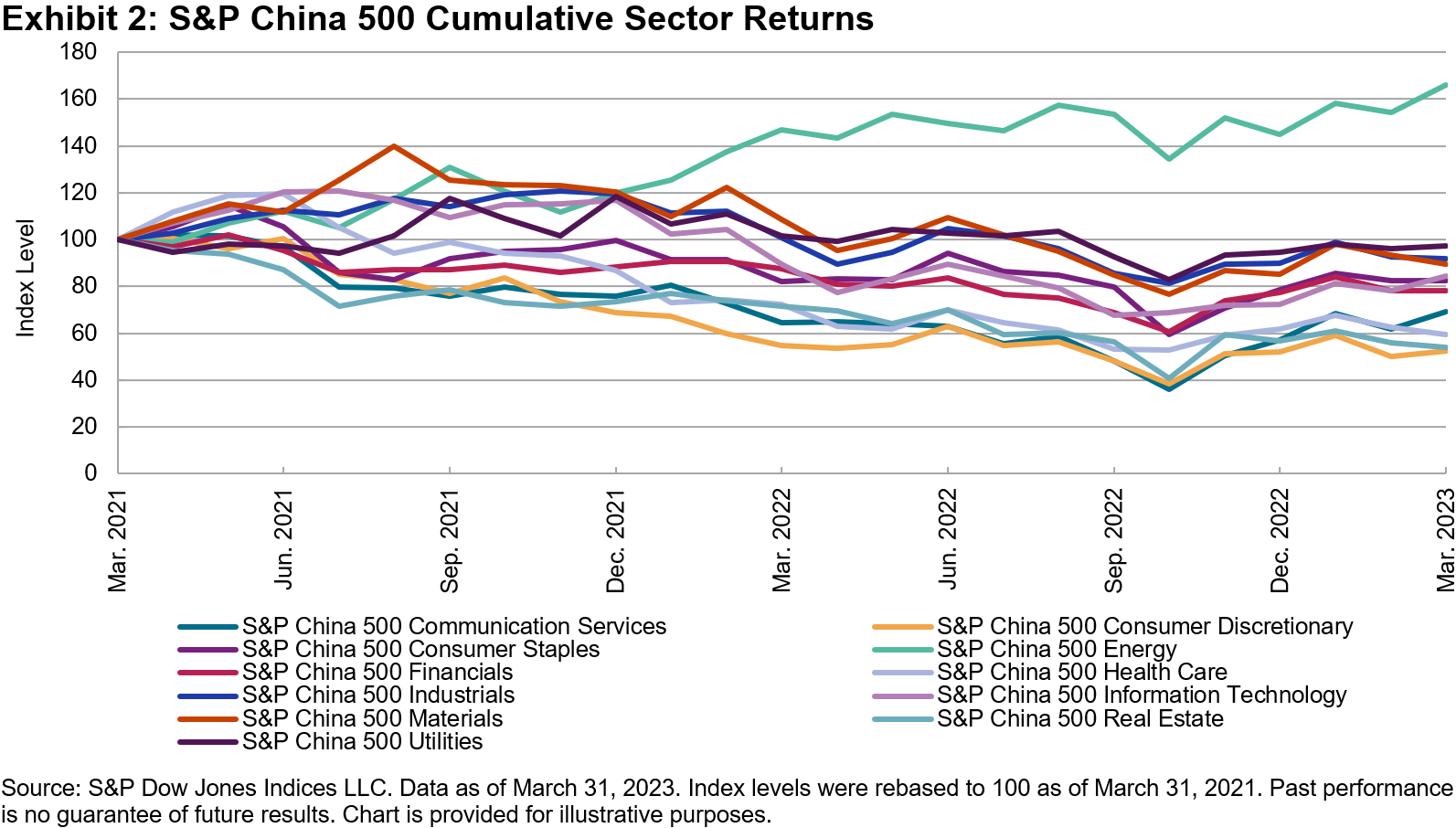In part, this stems from a subtlety in the construction of the two indices. High Beta seeks to measure the S&P 500’s highest-beta stocks. If the market has gone up, presumably the highest-beta stocks will be among the market’s best performers, and therefore might also be expected to turn up in Momentum. If the market has gone down, however, presumably the highest-beta stocks will be among the market’s worst performers, leading Momentum to tilt toward lower-beta constituents. This helps explain the specific differences observed during the first quarter of 2023, following the S&P 500’s 18% decline in 2022.