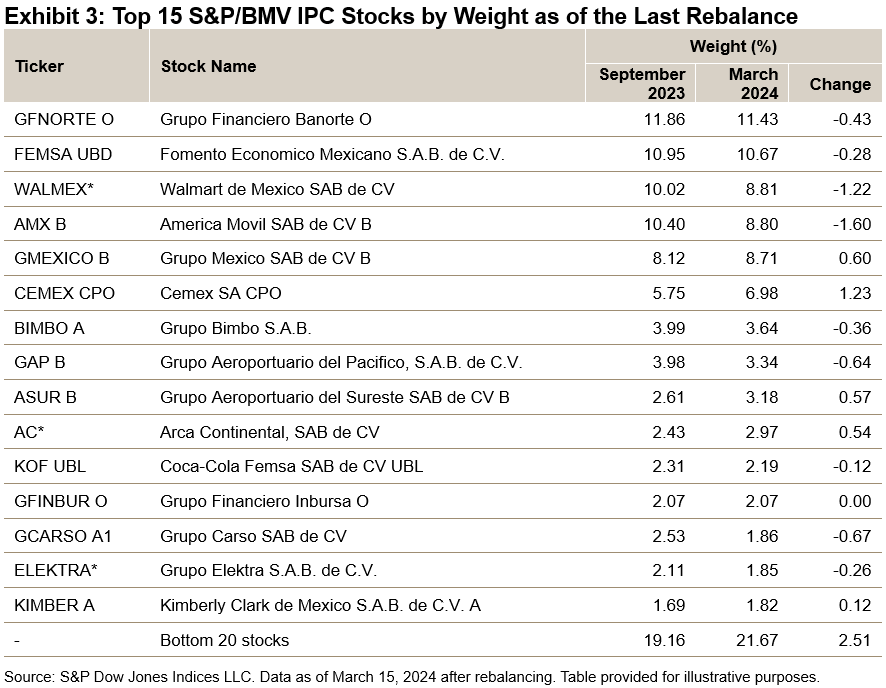 S&P Dow Jones Indices launched a consultation in May 2023 proposing certain methodology changes to the S&P/BMV IPC with the overall goal of reducing single-stock concentration and simplifying rather complex eligibility and selection criteria.