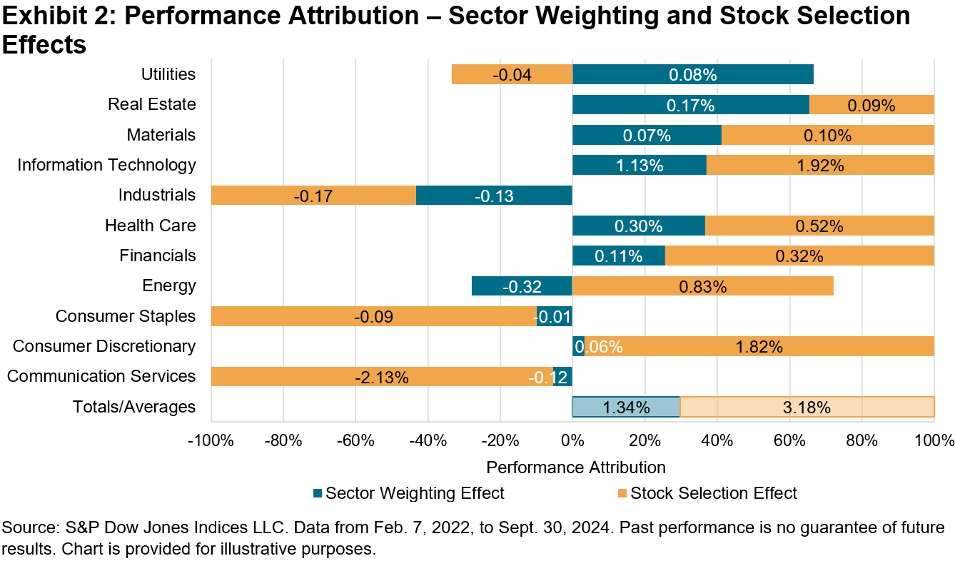 To test whether this information might have been useful historically, we2 ran a basic case study on the five U.S. election periods included in Exhibit 2—the presidential elections of 2016 and 2020, as well as the Congress and Senate elections in 2014, 2018 and 2022. Comparing the levels of “implied” and “realized” volatilities, VIX proved a poor predictor: the average realized S&P 500 index volatility in the month after the election day was on average over 8 points different from what VIX anticipated. But while VIXEQ was also far from perfect, it was less inaccurate: on average, just 3 points different from the subsequent (weighted) average S&P 500 single stock volatility. If that (admittedly small) sample is representative, we might expect individual stock movements to be relatively amplified over the next 30 days, both compared to historical norms and compared to the S&P 500’s concurrent fluctuations.