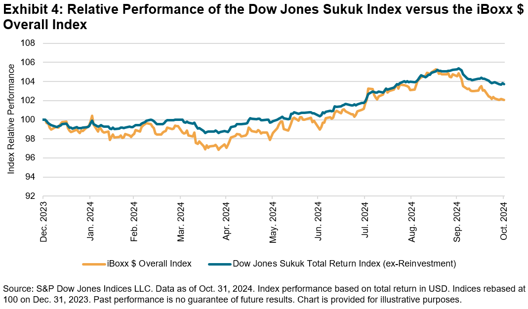 Related to duration or interest rate risk, one way we can assess bond market nervousness is through market expectations for long-dated U.S. Treasury volatility, as reflected by the options market with the Cboe 20+ Year Treasury Bond ETF Volatility Index (VXTLT). VXTLT movements have generally paralleled the rise in U.S. Treasury yields over the past couple of years, reaching a high above 22 on Oct. 31, 2024, ahead of the election. Exceptions included turbulent days, such as the unwind of the global carry trade on Aug. 5, 2024, when yields plunged as investors sought the safety of U.S. Treasuries and VXTLT spiked to over 20. The index has risen since early December 2024 to 17.51 as of Jan. 8, 2025, perhaps driven by market unease over the election results and associated tariff policies, the Fed’s future rate trajectory, as well as inflation.