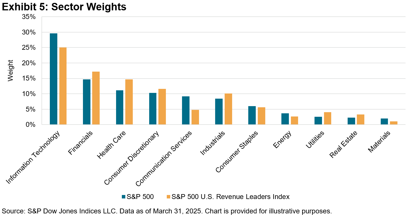 Moreover, the S&P World Index offers diversified weight across sectors. Exhibit 3 summarizes the weights of the Global Industry Classification System (GICS®) sectors for this benchmark.